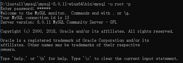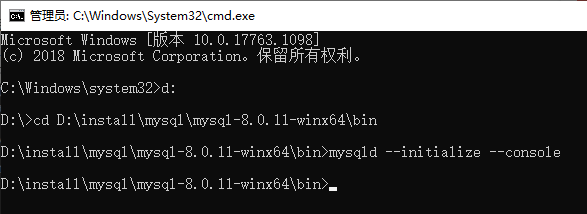 命令:cd D:\install\mysql\mysql-8.0.11-winx64
