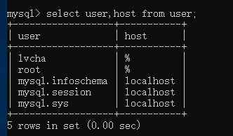 select user,host from user;