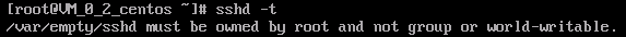 错误信息为:/var/empty/sshd must be owned by root and not group or world-writable