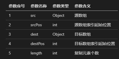 数组的拷贝动作是系统级的,性能很高。System.arraycopy方法具有5个参数,含义分别为: