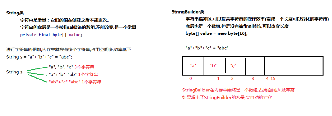 由此可知,如果对字符串进行拼接操作,每次拼接,都会构建一个新的String对象,既耗时,又浪费空间。为了解决这一问题,可以使用java.lang.StringBuilder类。