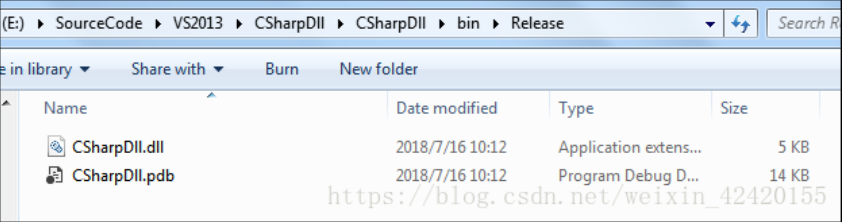 4.对project进行release build,在release目录下生成了CSharpDll.dll(待会用到)