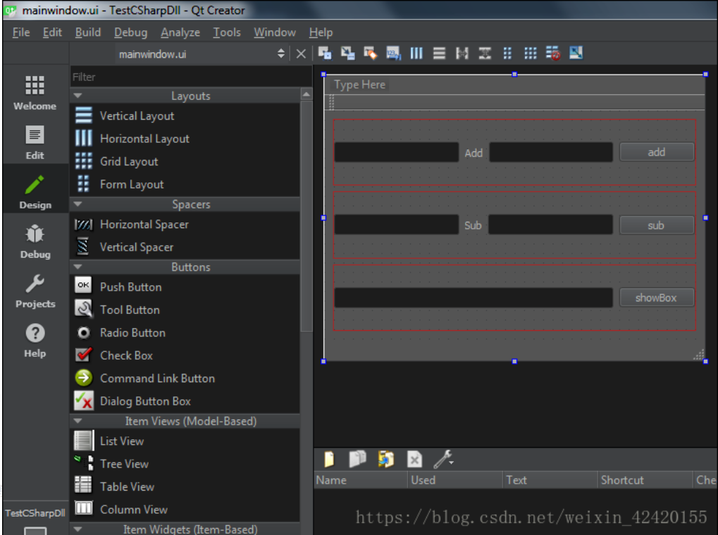 12.在mainwindow.ui中,设计调用api_add函数,api_substract函数和api_showBox函数的界面