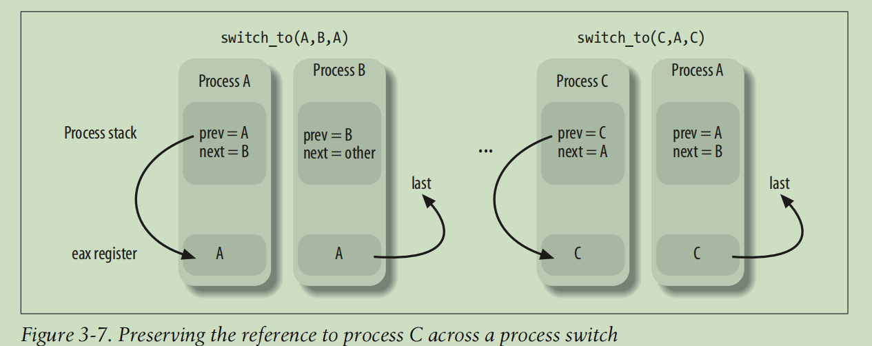 If next_p was never suspended before because it is being executed for the first time, the function finds the starting address of the ret_from_fork( ) function