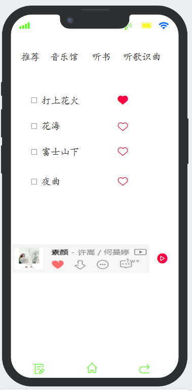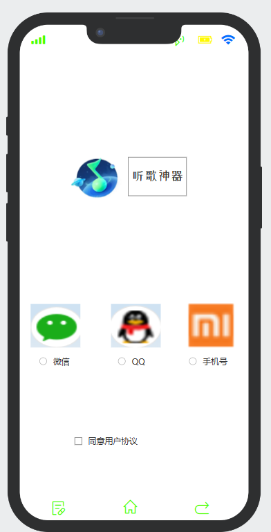 考虑QQ音乐,网易云等听歌软件,设计了登陆界面,主页面,个人主页,歌词展示等四个界面,每个界面都兼顾用户的不同需求,例如登录界面可以选择QQ登录,微信登录,个人主页不仅包括个人信息,还兼备我的歌单,我的收藏,我的喜欢等等。
