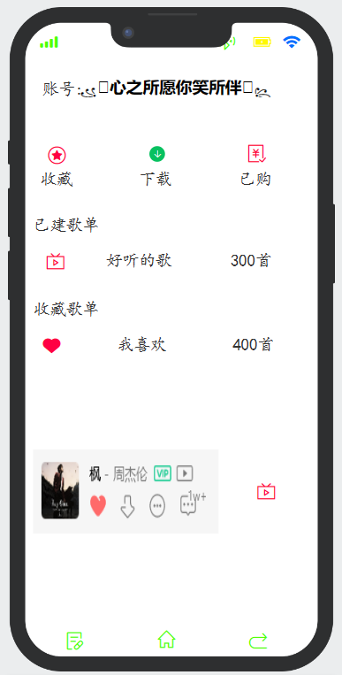 由账号,已建歌单,收藏歌单,播放的歌曲组成