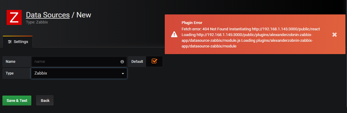 Grafana添加zabbix数据源出现404 Not Found Instantiating