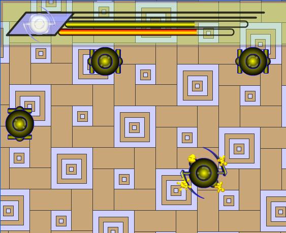 进攻时能量的退减,不动时(不按Up键时)能量的积蓄的函数还没写好,原因就是旋转碰撞函数还没写好。不过被攻击时血的退减与能量的变动函数写好了,它们并不是突然一下子能量条或血条就变短了,而是像素单位式地变长或变短,这样可以增加视觉效果。代码如下: