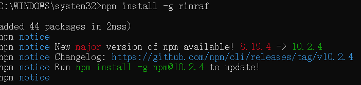 1、安装rimraf(注意:需要安装npm,我之前安装过nodejs了)