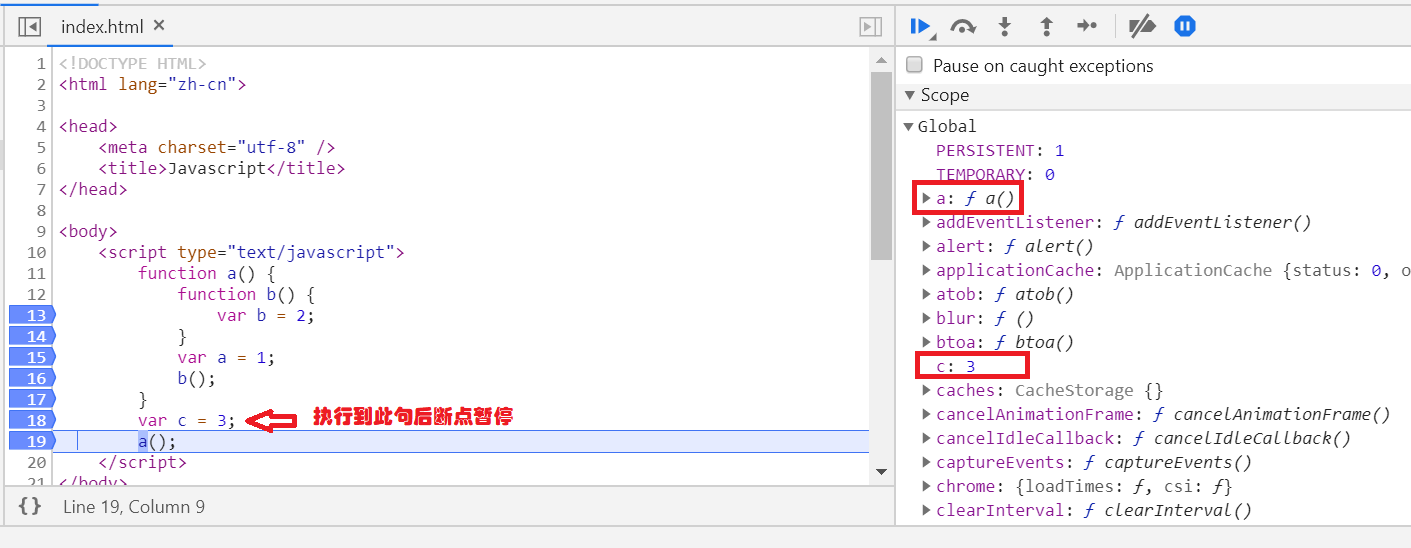 当b函数被执行时(前一刻):