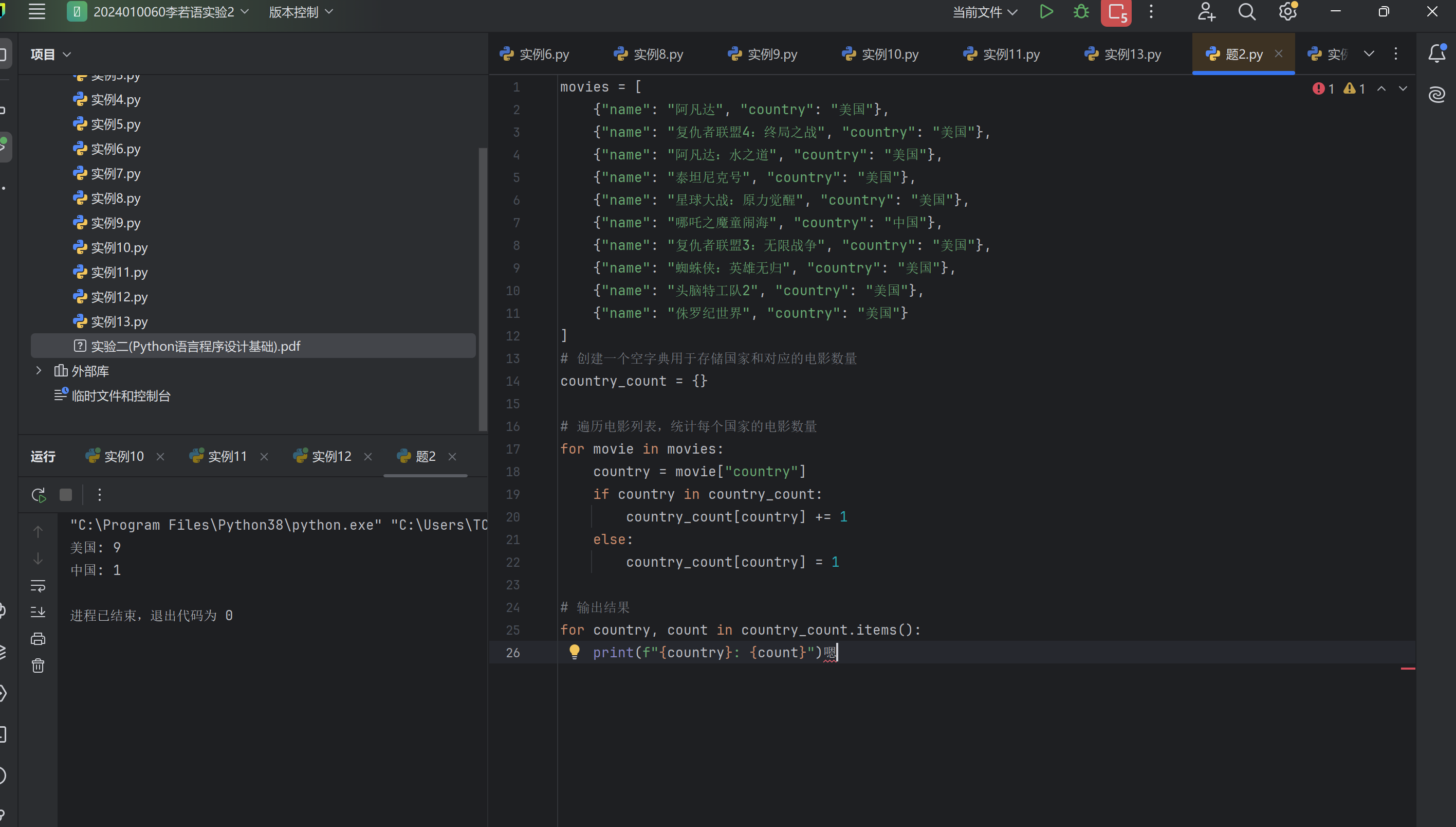 # 计算每个学院的专业数量,生成包含学院名和专业数量的元组列表