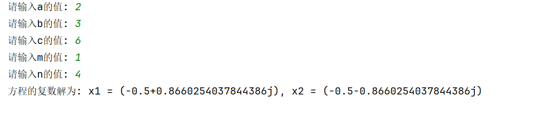 print(f"方程的复数解为: x1 = {x1}, x2 = {x2}")