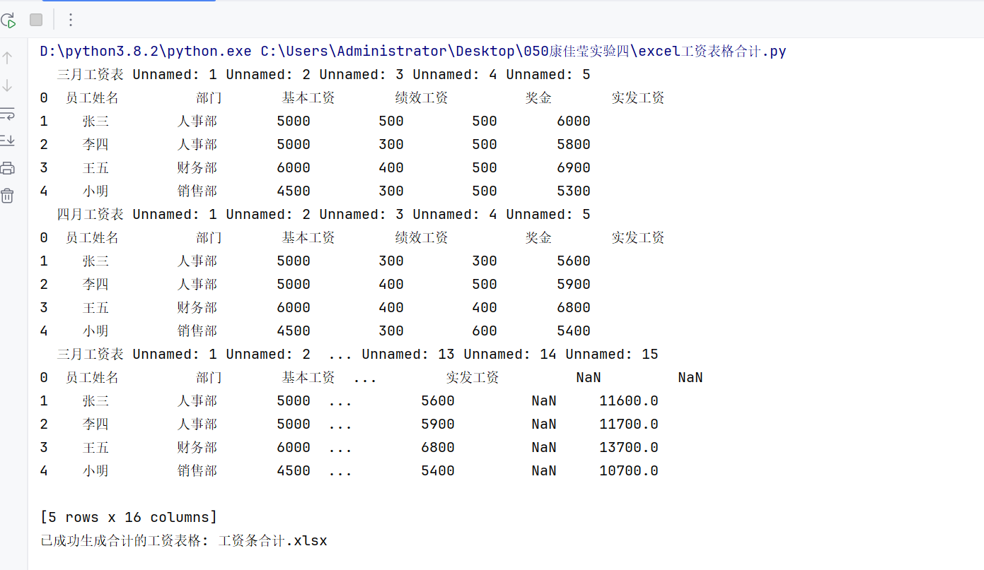 data = pd.read_excel('C:\\Users\\administrator\\Desktop\\工资条合计.xlsx')