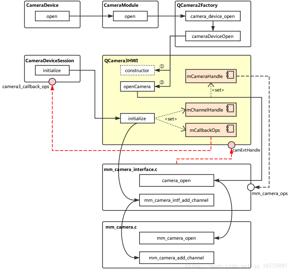注意图中的 captureResultCb 相关的内容我并没有分析,这是一个回调函数,应该是在拍照和预览数据上传时用到的,把它画出来是因为在培训的时候有提到,所以这里也提及一下,表明它与 mCallbackOps 有这么一个联系。