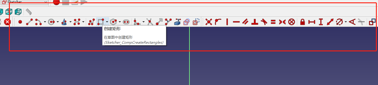 此处选择创建矩形(Sketcher_CompCreateRectangles),在基面中绘制。此时,可以通过点击任一线段进行调整。完成调整后,点击导航栏中的“close”,完成草图绘制,并回到零件设计工作台。