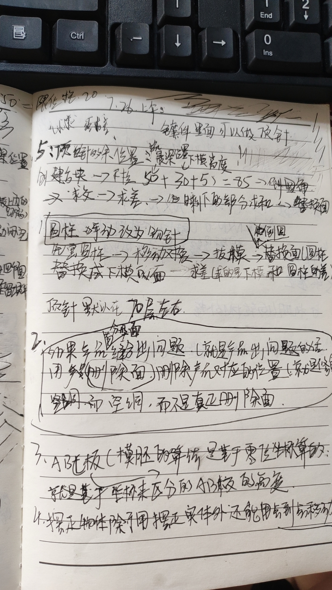 7.26-上午练习-下午斜顶分摸 (顶针多余的算法-手动用圆柱建钩针-分型面缝合问题-AB板算法-摆阵物体方式)