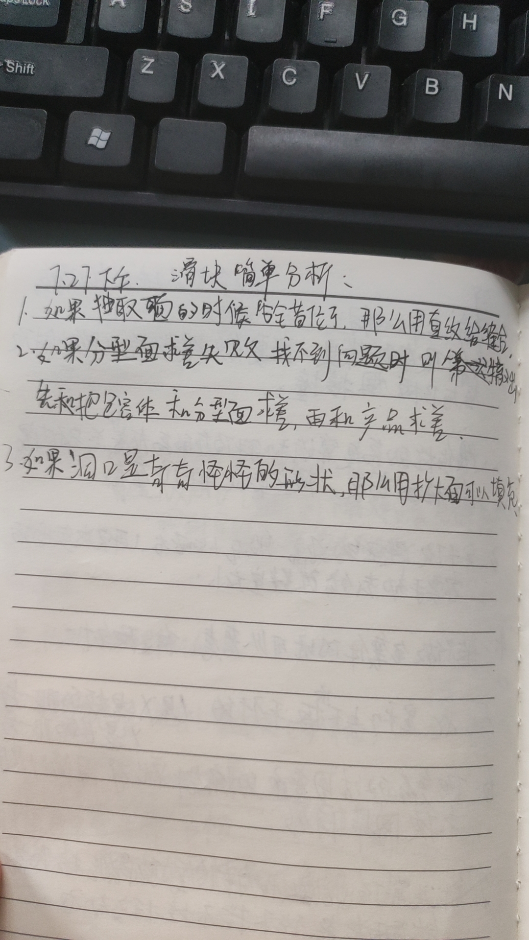7.27下午斜顶14练习(滑块提前了解-抽取面错位的话可以用直纹补上-分型面和包容体求差错误可以先求这两个的差再求包容体和产品的差-洞口是奇怪的造型的话用扩大面可以补上)
