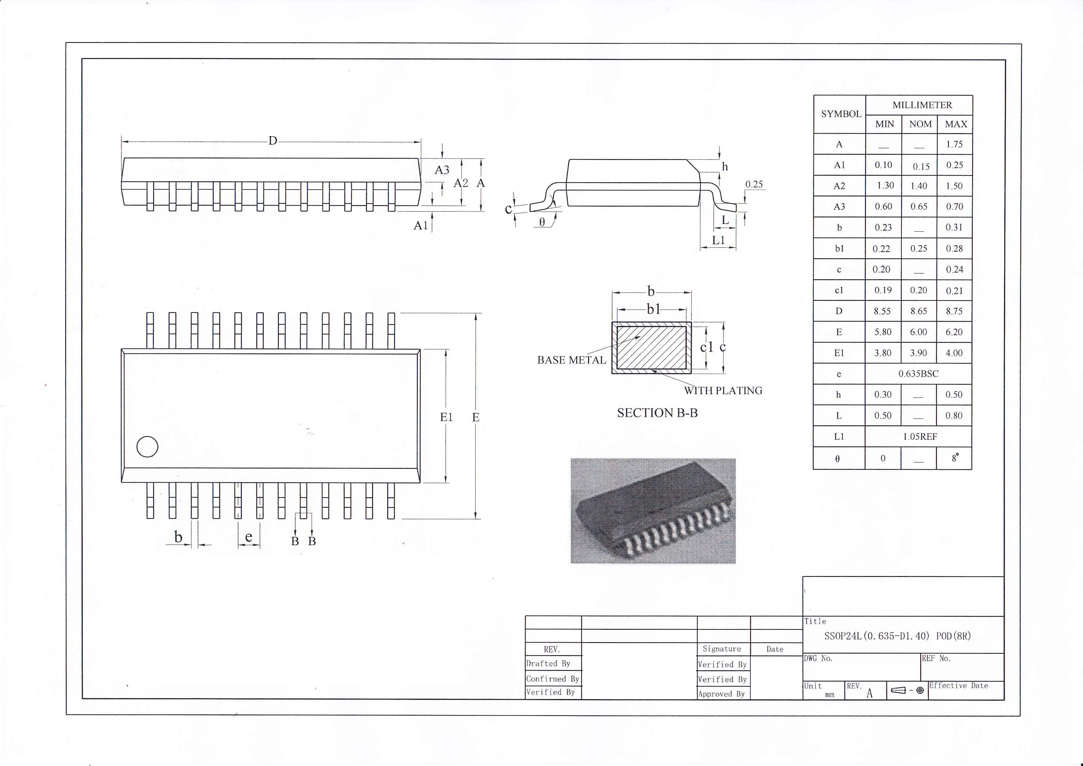 • 封装:SSOP24L(150mil) (8.65mm x 3.9mm PP=0.635mm)