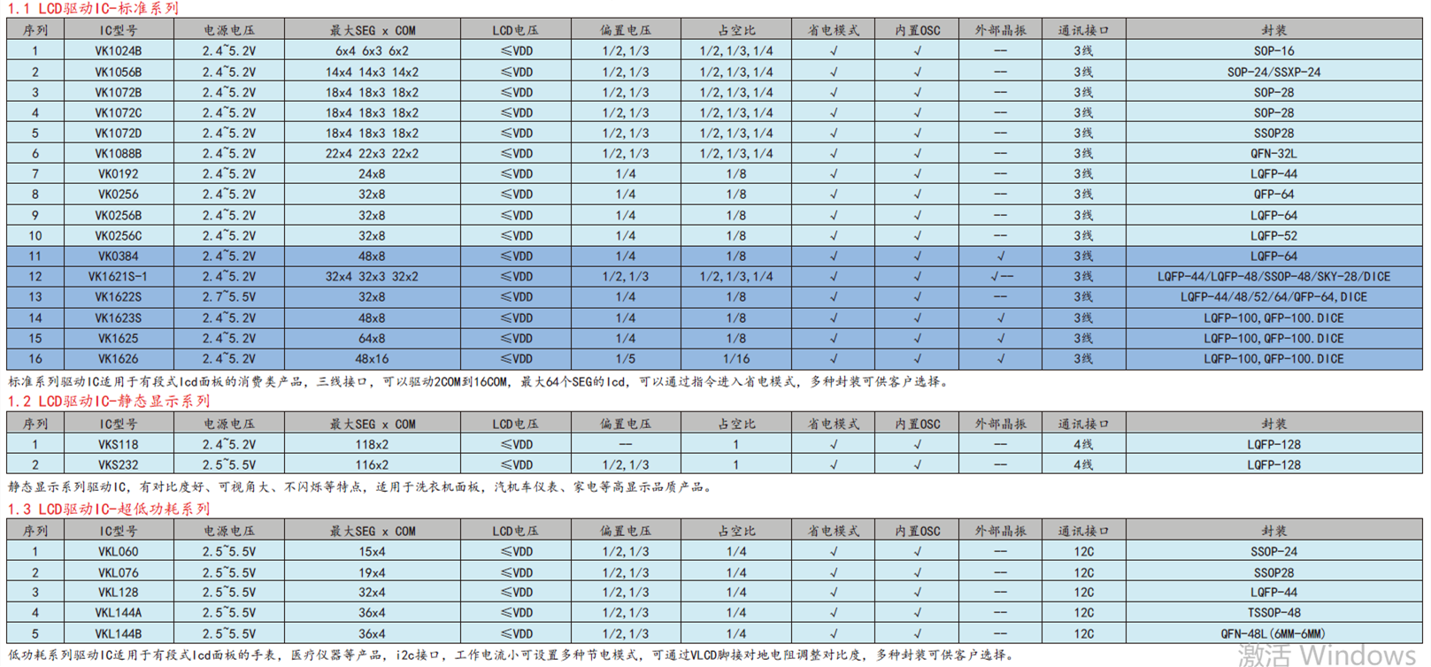 14*4点 LCD液晶显示驱动控制电路(IC)-VK1S56D SSOP24 0.635脚距,多用于美容仪器/电池电量显示等小型段码屏显示驱动,具省电模式