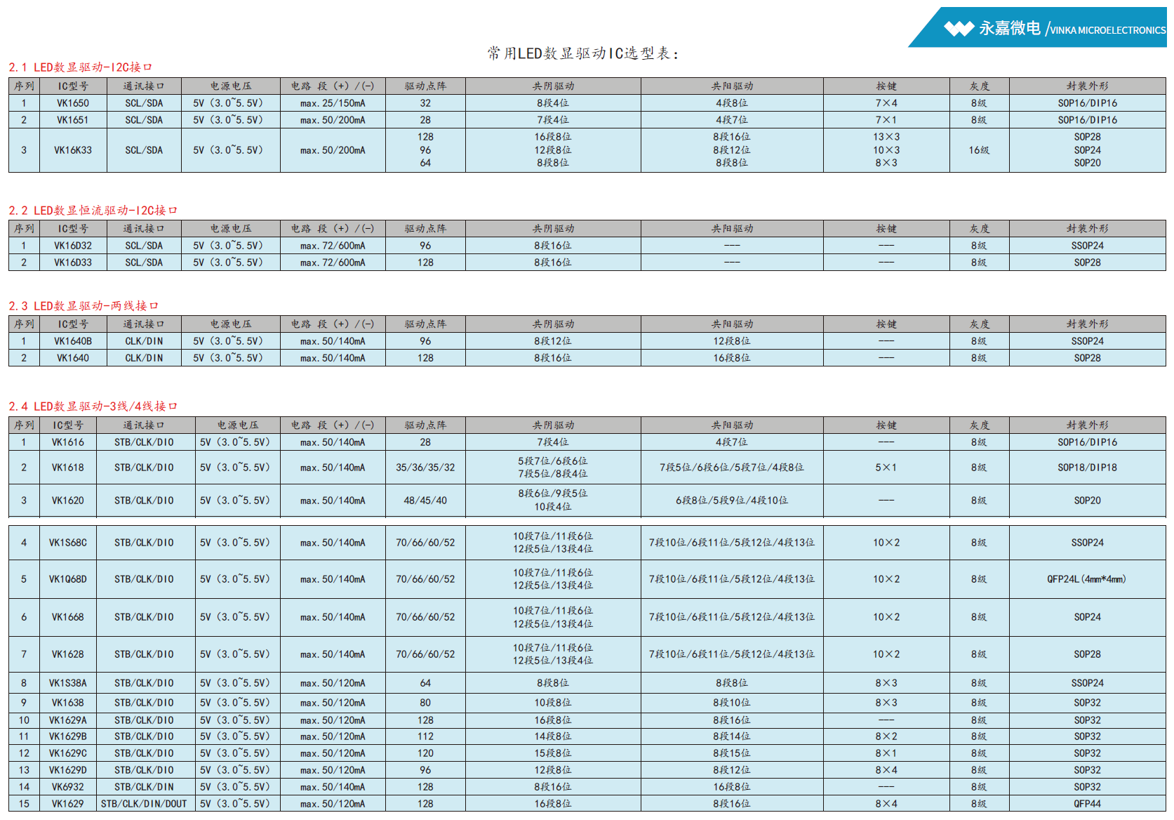 永嘉微电/VINKA原厂 抗干扰LED数显驱动/数码管显示驱动IC(芯片)-VK1616 7*4点阵,高性价比 抗干扰能力强,多用于小型LED显示屏驱动,可提供FAE技术支持