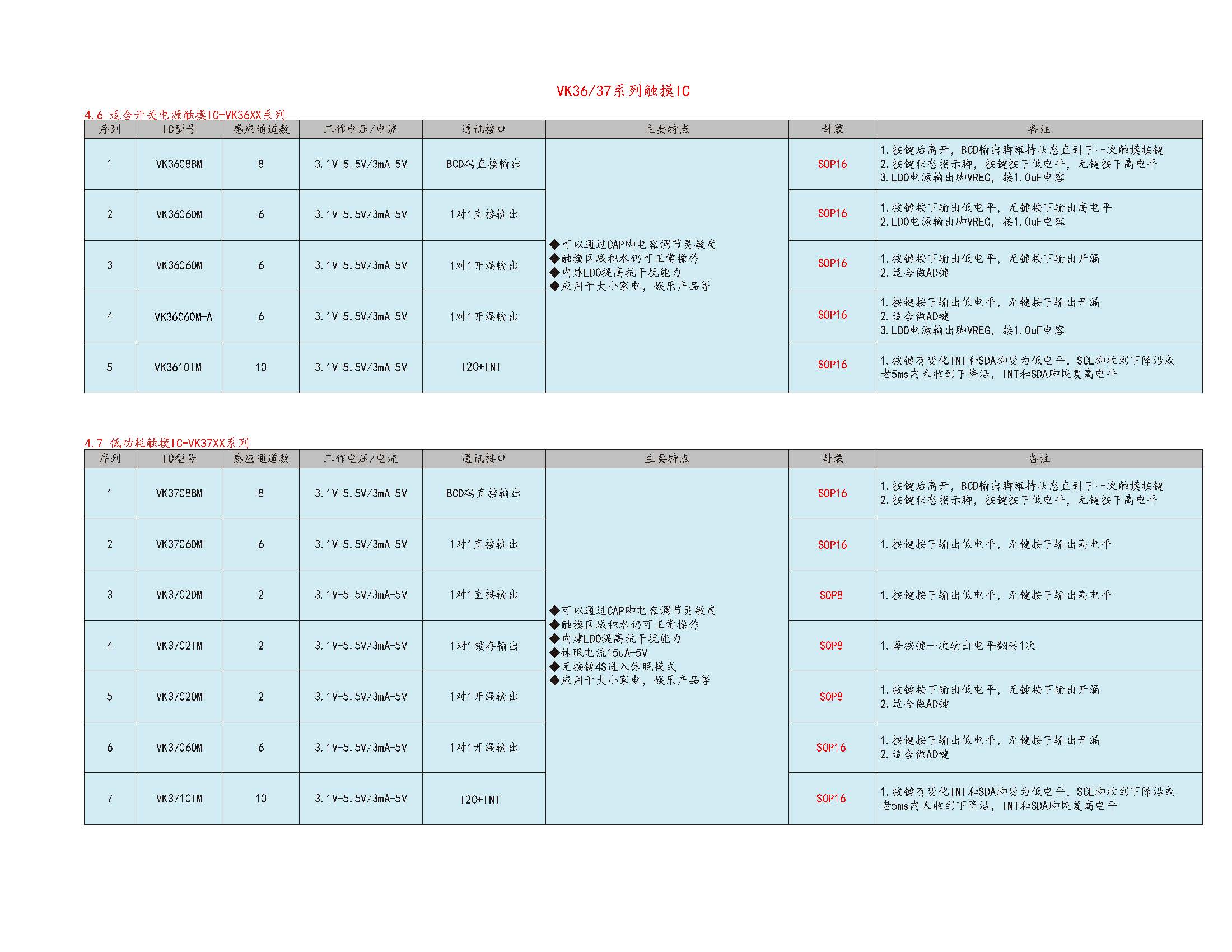 VK3610IM提供10侲UR触摸感应按键及两缍UR式串列界面,并有中断输出INT脚与MCU联繫。特性上对于防水和抗干扰方面有很优异的表现!