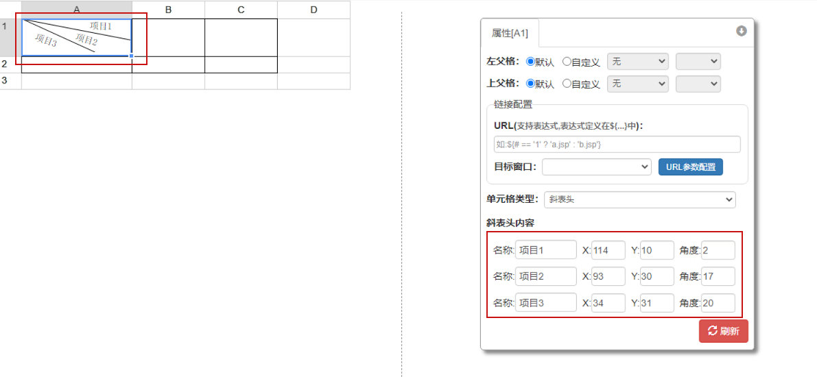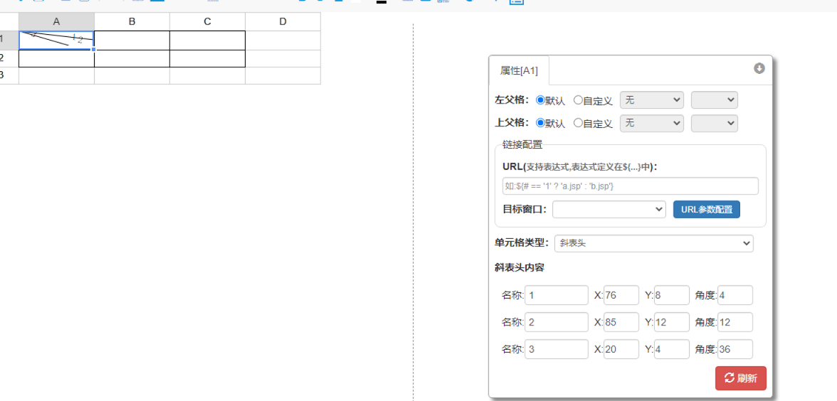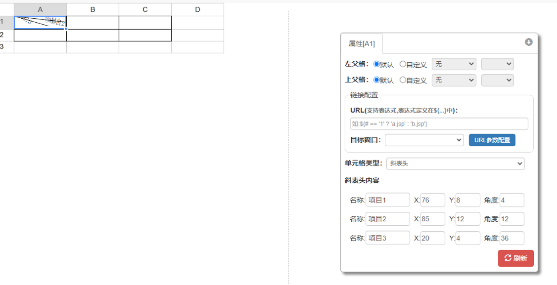 说明:生成的斜表头是根据当前格子的行高和列宽来自动生成的。并且生成以后如果再调整格子的行宽和列高时斜表头不会再自动变换长度大小,所以在设置斜表头是要先把格子的行高和列宽先定义好。否则设置会出现问题。