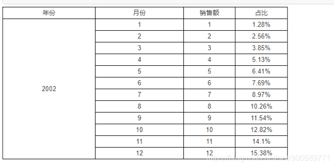 如图所示,希望统计销售额每个月占比