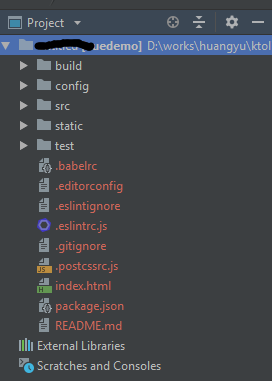 其中,build目录是VUE编译以及初始化的一些文件,config目录是一些全局设置,以及各个环境的个性化设置文件。src。。。源代码,static。。。静态文件,test。。。测试代码。根目录下的文件,目前需要关注的是 package.json ,这个文件跟 java 项目的 build.gradle 文件一样,描述项目的名称、属性、依赖js库等信息。后续会详细解释。