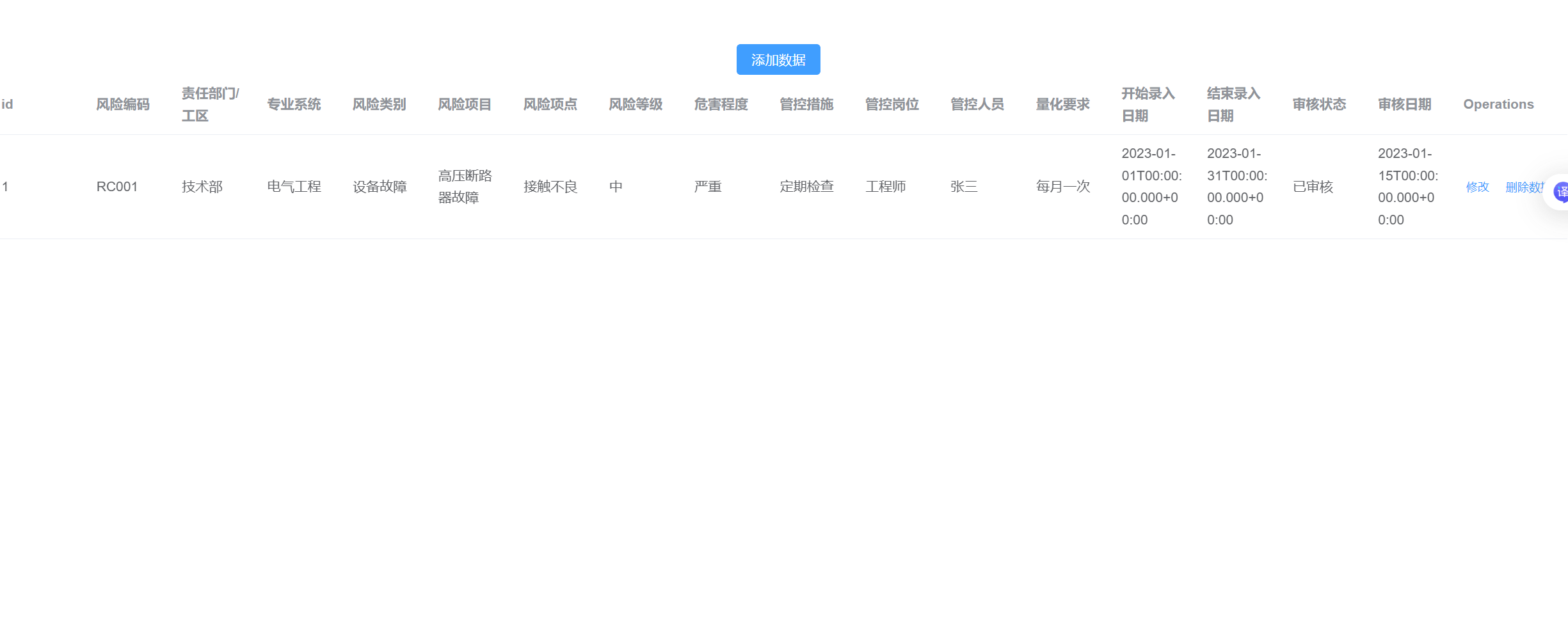 今天完成了安全风险部分的部分逻辑和增删改查,后续将进行数据增加的查重和批量导入