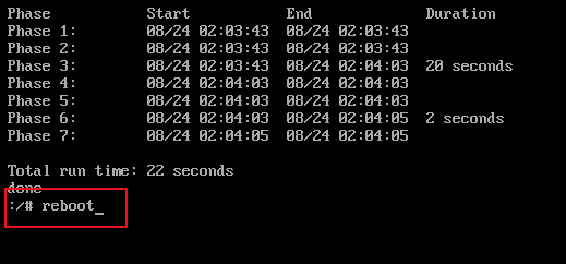 然后一直按空格键跳转到最后一页查看下图中红色部分的内容,查看XFS后面括号里的内容,看里面是sda2还是sda3