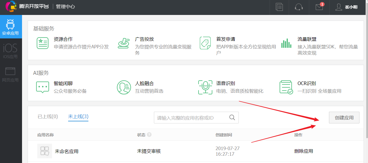 第二步:到腾讯QQ开放平台申请开发者账号并创建应用:腾讯开放平台