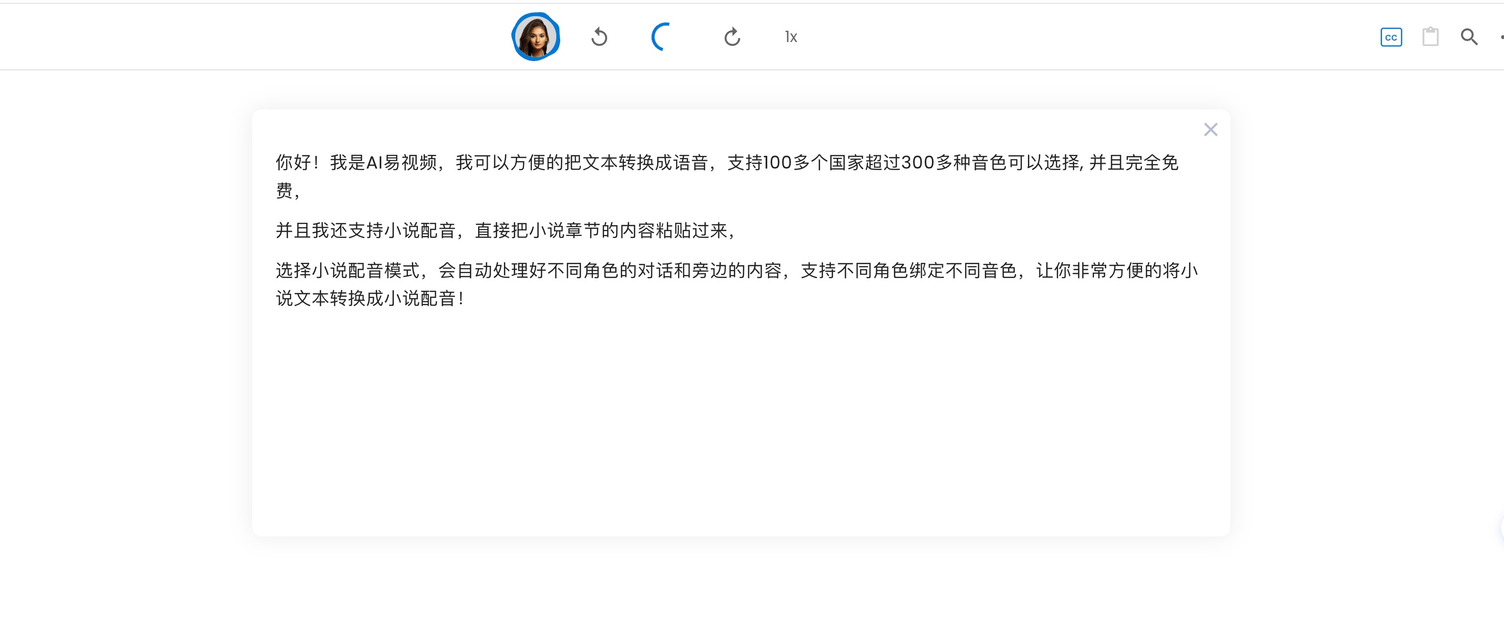 AI易视频是一款功能丰富的国产AI创作平台,提供多种文本转语音功能: