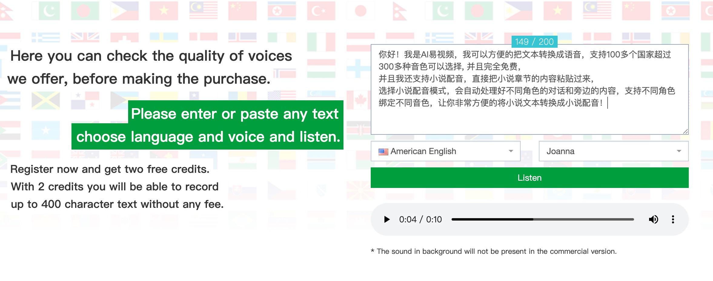 如果你正在寻找一款功能全面、支持中文且特别适合小说转语音的工具,我强烈推荐尝试AI易视频。它不仅提供基础的文本转语音功能,还有文本翻译和小说角色配音等特色功能,能够帮助你更高效地创作优质内容。