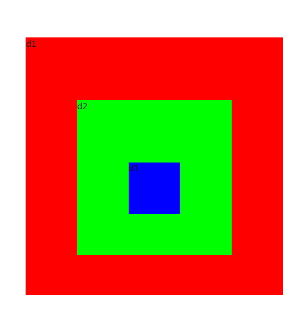 根据事件机制,点击d3后,首先从window开始向下传播到目标元素d3,触发d3的click事件,弹出'd1',然后向上传播,沿途经过祖先元素d2,d2也绑定了点击事件,因此触发其点击事件,弹出'd2',继续向上传播,到d3,d3同样绑定了点击事件,触发而弹出'd3'。继续向上传播到window对象,不再有click事件。