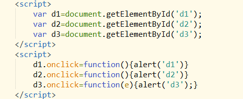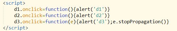 e.stopPropagation()可阻止事件冒泡。此时点击d3则只会触发目标元素的事件,不会冒泡,即只弹出‘d3’。