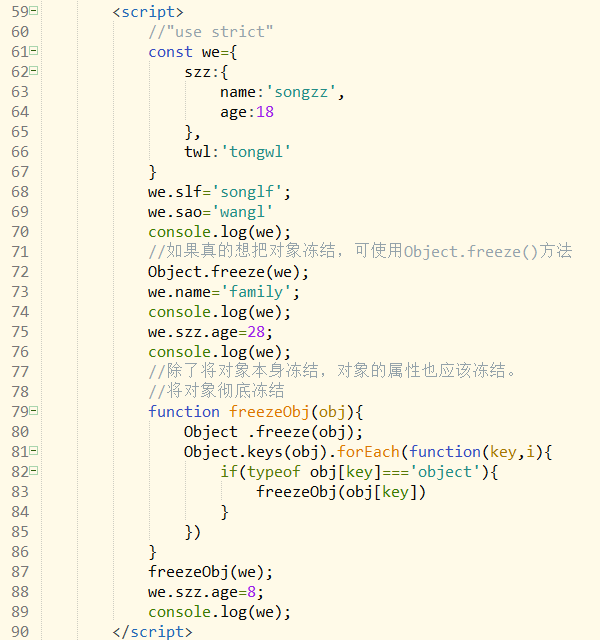 如果要冻结一个对象,要如下: