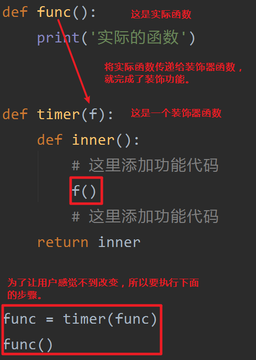 我们利用这个inner(),传递参数a,实际上还是去调用func(a),也就是实现了对带有参数的函数进行装饰。