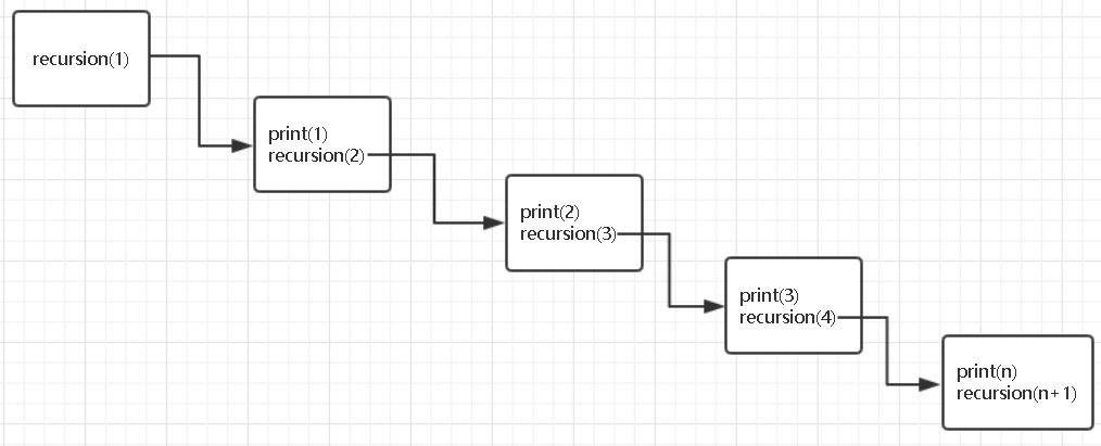 import sys sys.setrecursionlimit(1500) # 修改递归调用深度 def recursion(n): # 定义递归函数 print(n) # 打印n recursion(n+1) # 在函数的运行种调用递归 recursion(1) # 调用函数 # n = 1 print(1) recursion(2) # n = 2 print(2) recursion(3) # n = 3 print(3) recursion(4) # ...