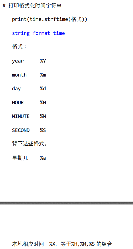 import time print(time.time()) print(time.strftime('%Y-%m-%d-%H-%M-%S %a')) print(time.strftime('%X'))