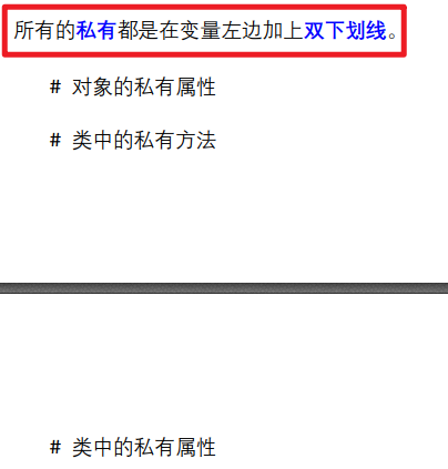 class Person: def __init__(self, name, password): self.name = name self.__password = password # 双下划线是私有属性,无法在外部调用 def get_pwd(self): return self.__password wang = Person('wang', '123') print(wang.name) print(wang.get_pwd())