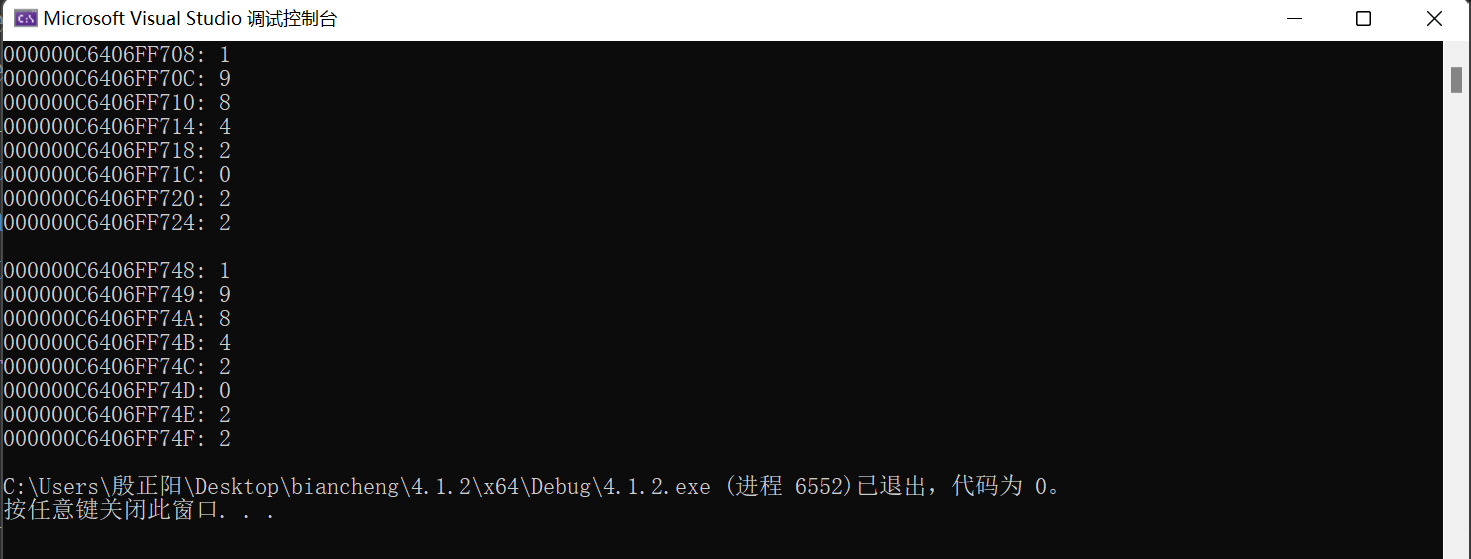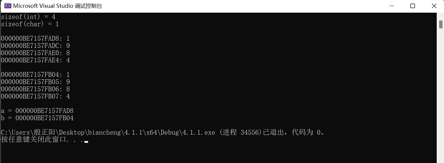 printf("%p: %c\n", &b[i][j], b[i][j]);
