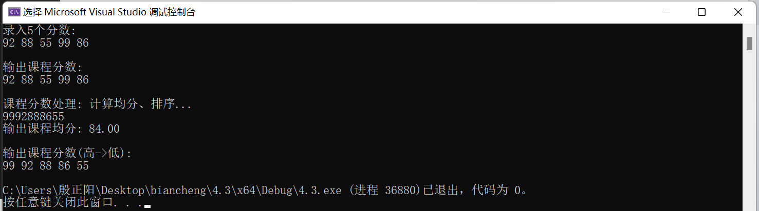 printf("\n课程分数处理: 计算均分、排序...\n");