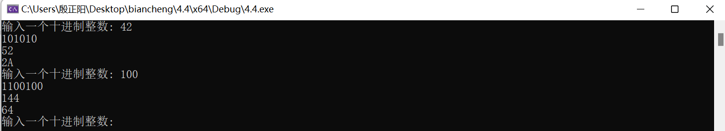 dec2n(x, 2); // 函数调用: 把x转换成二进制输出