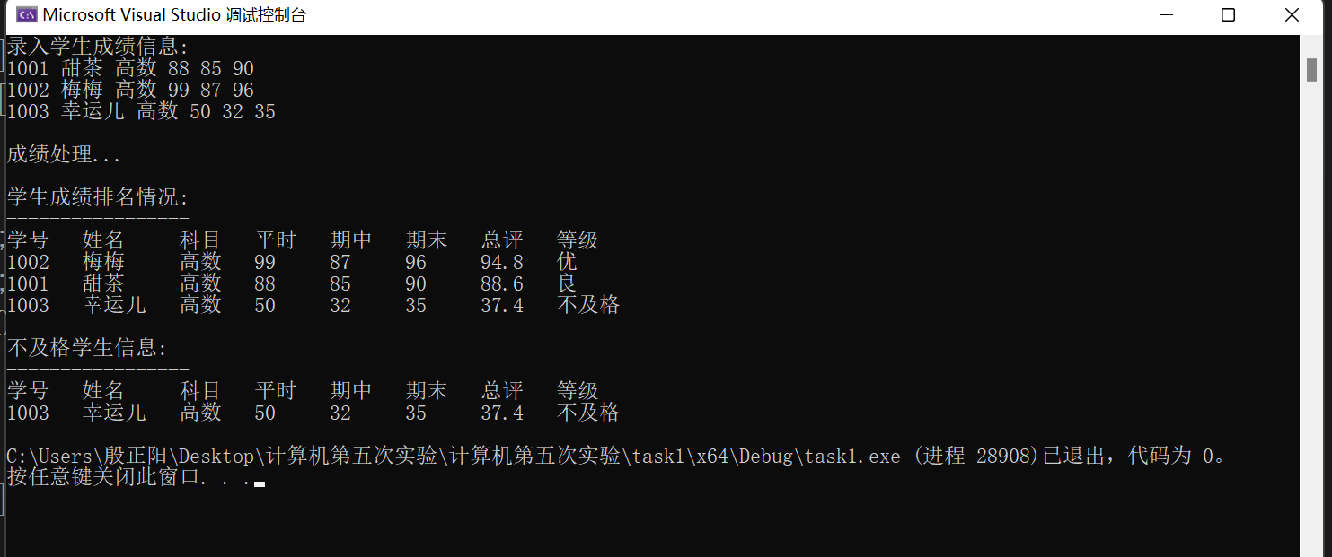 printf("\n成绩处理...\n");