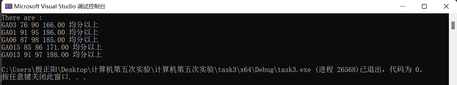 // 输出均分以上学生记录