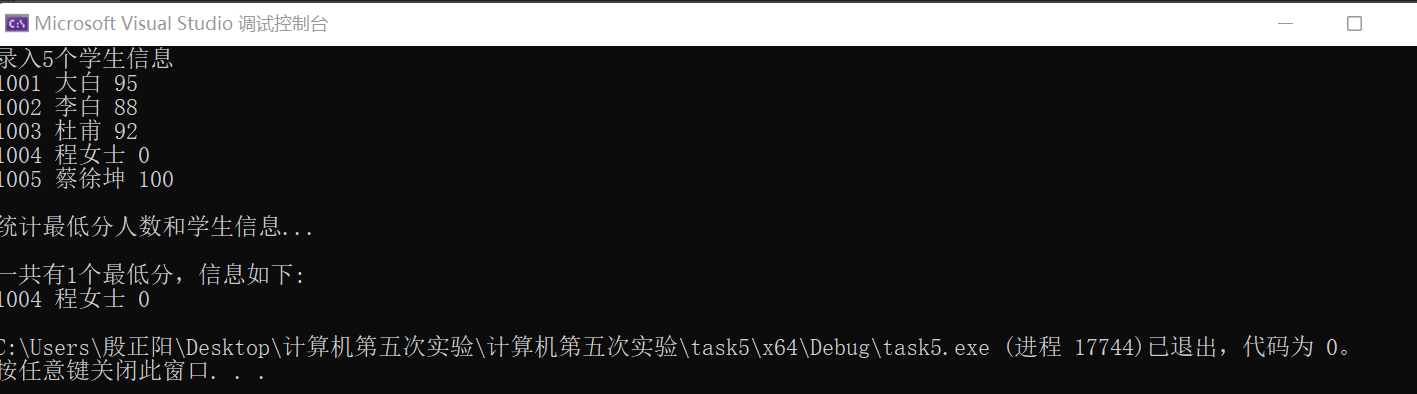 printf("\n一共有%d个最低分,信息如下:\n", count);