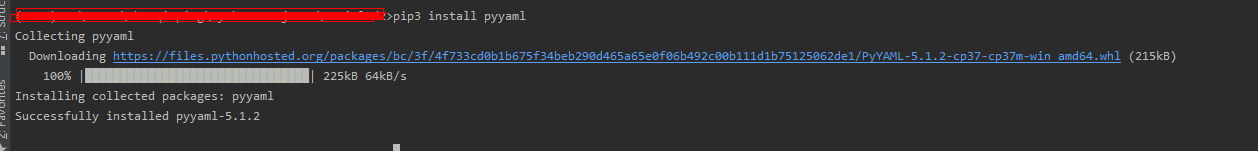 如:pip install pyyaml ,标识安装成功啦