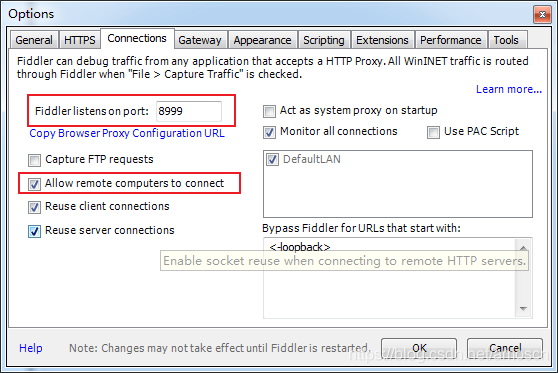 3.安装成功后打开fiddler,进入Tools -> Connections