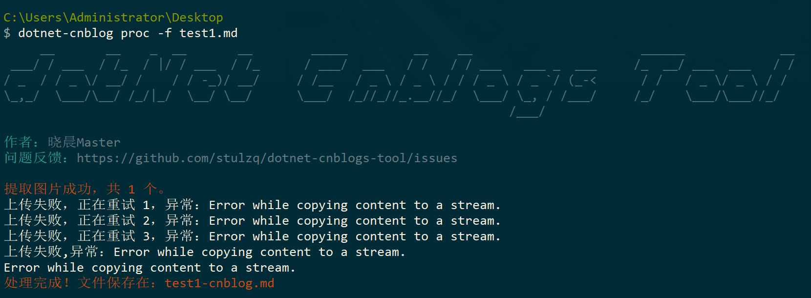 使用dotent-cnblog工具会重新处理md文档,对文件内的图片进行解析,同时将本地图片上传到博客园图床,执行完会在md文件目录中生成一个新的md文件(含有cnblog字样)。