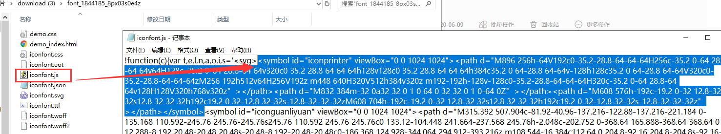 4、在下载的iconfont.json中获取对应的icon信息